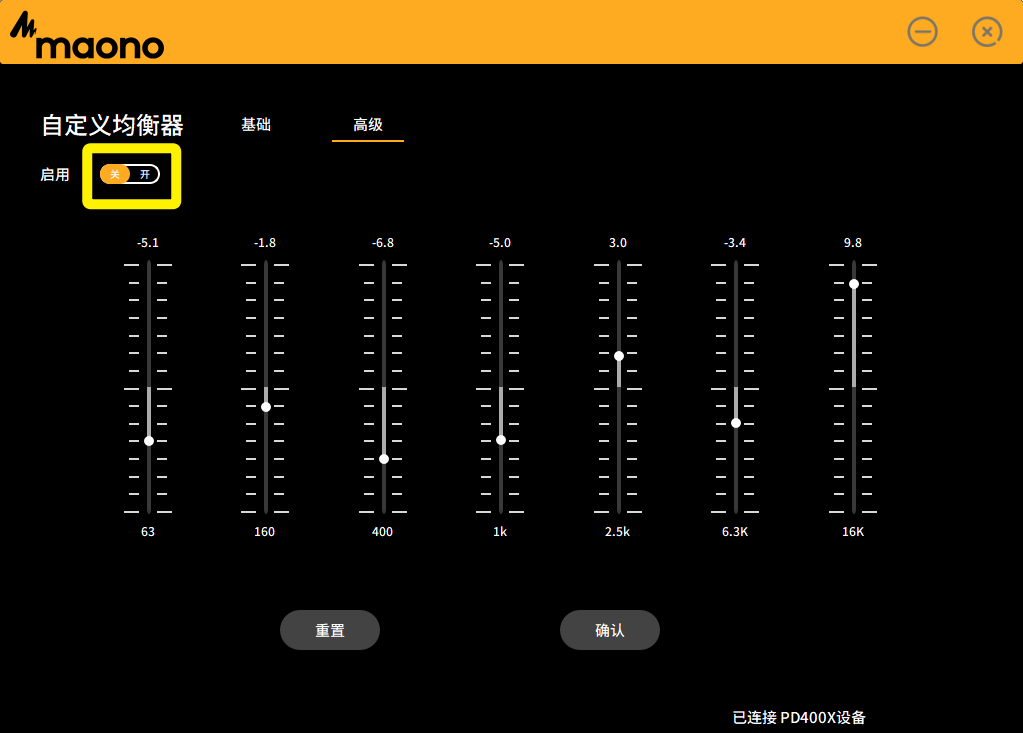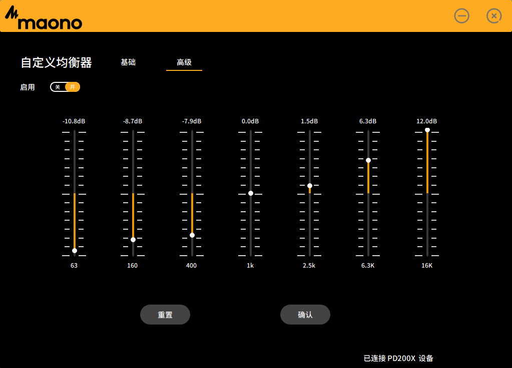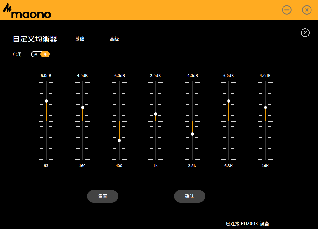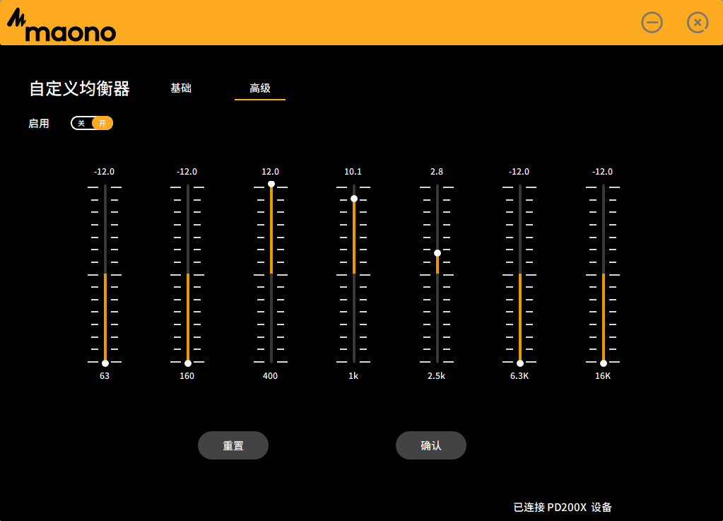 0-DM系列麥克風MaonoLinkPD系列麥克風Maono Link 自定義 EQ(等化器)功能使用說明1. 軟硬體需求 (Requirements) 要使用自定義 EQ 功能,你的設備與軟體需符合以下版本要求 1111: 注意: 請至 Maono 官網下載最新的 Maono Link 軟體 2。 2. 自定義 EQ 頻率調整指南 (Frequency Guide) 文件提供了各個頻段調整對聲音影響的參考,幫助你理解該如何手動調整 EQ 3333: 3. EQ 參數範例 (EQ Sample Parameters) 文件展示了四種不同場景的 EQ 參數設置範例,你可以參考截圖中的滑桿位置進行設定: 4. 聲音測試 (Sound Test) 設定完成後,請依照以下步驟測試效果 15151515: 2025-12-21Read more Leave a Reply Cancel replyYour email address will not be published.Required fields are marked *Name * Email* Website Comment