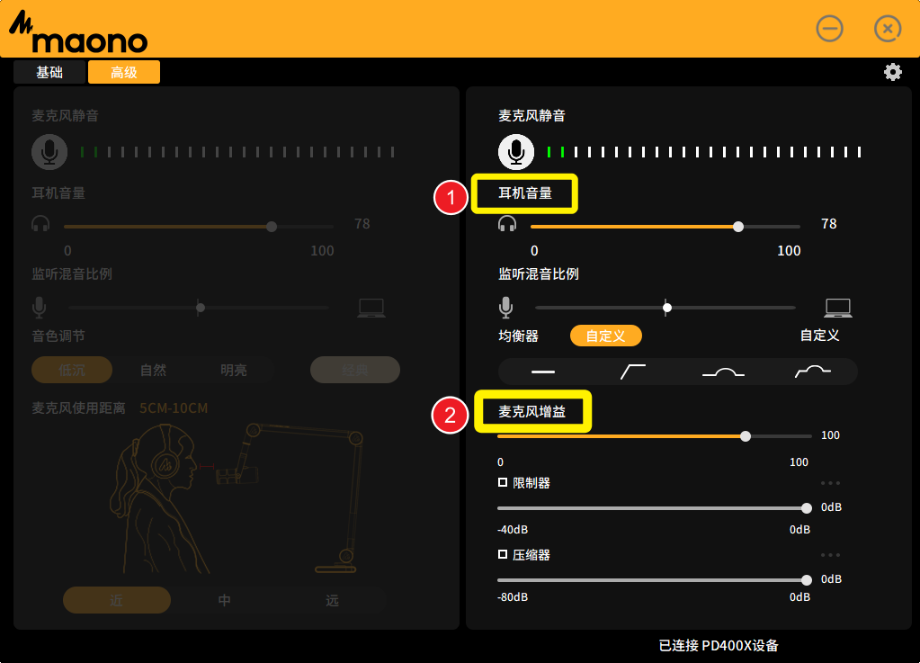 0-MaonoLink各型號使用MaonoLink 之版本下載DM30RGB USB麥克風 下載Mac版 Windows 版下載 安卓版下載 從 Google Play 下載 PD100X RGB麥克風 下載Mac版 Windows 版下載 – – PD100X USB/XLR麥克風 下載Mac版 Windows 版下載 – – PD200X USB/XLR麥克風 下載Mac版 Windows 版下載 安卓版下載 從 Google Play 下載 PD300X USB/XLR麥克風 下載Mac版 Windows 版下載 –... 2025-12-22Read more 0-麥克風常見問題麥克風增益(Microphone Gain)一、什麼是麥克風增益(Microphone Gain) 麥克風增益是指聲音訊號經麥克風擷取後,在前級放大器(Preamp)階段進行的訊號放大強度。它並非改變人聲特質,而是調節麥克風輸出的原始電平強度,確保後續設備(音訊介面、混音器、電腦或手機)能準確辨識和處理此訊號。 核心定義:麥克風增益決定了系統對您聲音的捕捉靈敏度-增益越高,系統”聽到”的聲音越強。 二、調節麥克風增益的核心作用 調節增益的本質目標:取得足夠響亮、清晰且無損的原始訊號。具體體現在兩個維度: 專業準則:增益應設定在人聲峰值不觸碰失真臨界點的前提下,使正常語音電平達到系統最佳工作區間。 三、調節增益的三大實戰要則(避坑指南) 這是新手最易失誤的環節。請嚴格遵循以下原則: 法則一:嚴防削波失真(爆音) 這是增益調節的首要紅線。當訊號電平超過設備承載極限(數位系統的最大電平值0dBFS),聲波波形頂部會被強制截斷。 法則二:預留動態餘裕(Headroom) 切勿將日常語音填滿電平表。需為情緒起伏(大笑、驚嘆)或突發強音預留緩衝空間。 法則三:平衡增益與本底噪聲 高增益會同步放大電路噪聲,形成”沙沙”底噪。 常見迷思:為躲避噴麥而遠離麥克風,再強行調高增益補償音量 專業解法:“物理距離優先於電子增益”→ 保持一拳距離(約15cm)貼近麥克風,→ 僅需小幅提升增益即可獲得飽滿人聲,→ 從根源上抑制底噪,大幅提升信噪比 2025-12-21Read more 0-DM系列麥克風MaonoLinkPD系列麥克風Maono Link 自定義 EQ(等化器)功能使用說明1. 軟硬體需求 (Requirements) 要使用自定義 EQ 功能,你的設備與軟體需符合以下版本要求 1111: 注意: 請至 Maono 官網下載最新的 Maono Link 軟體 2。 2. 自定義 EQ 頻率調整指南 (Frequency Guide) 文件提供了各個頻段調整對聲音影響的參考,幫助你理解該如何手動調整 EQ 3333: 3. EQ 參數範例 (EQ Sample Parameters) 文件展示了四種不同場景的 EQ 參數設置範例,你可以參考截圖中的滑桿位置進行設定: 4. 聲音測試 (Sound Test) 設定完成後,請依照以下步驟測試效果 15151515: 2025-12-21Read more Leave a Reply Cancel replyYour email address will not be published.Required fields are marked *Name * Email* Website Comment